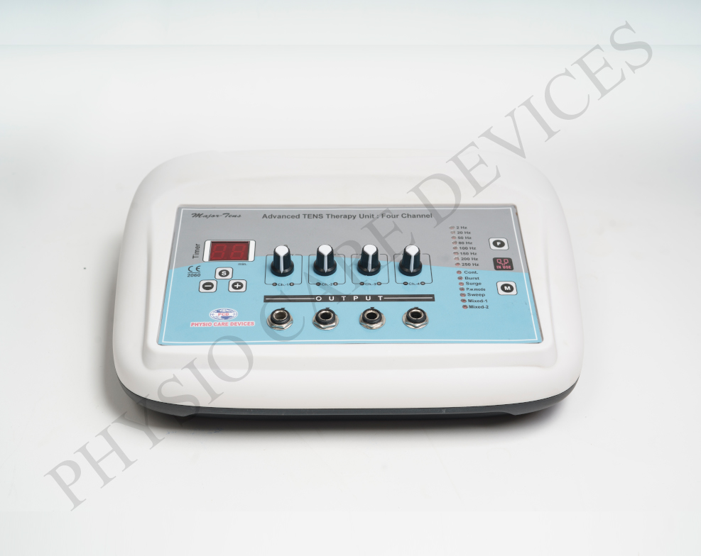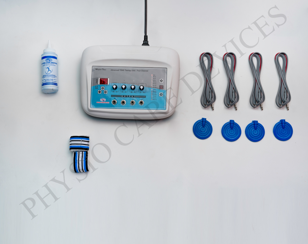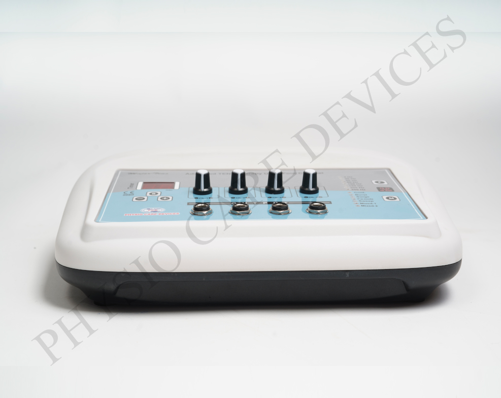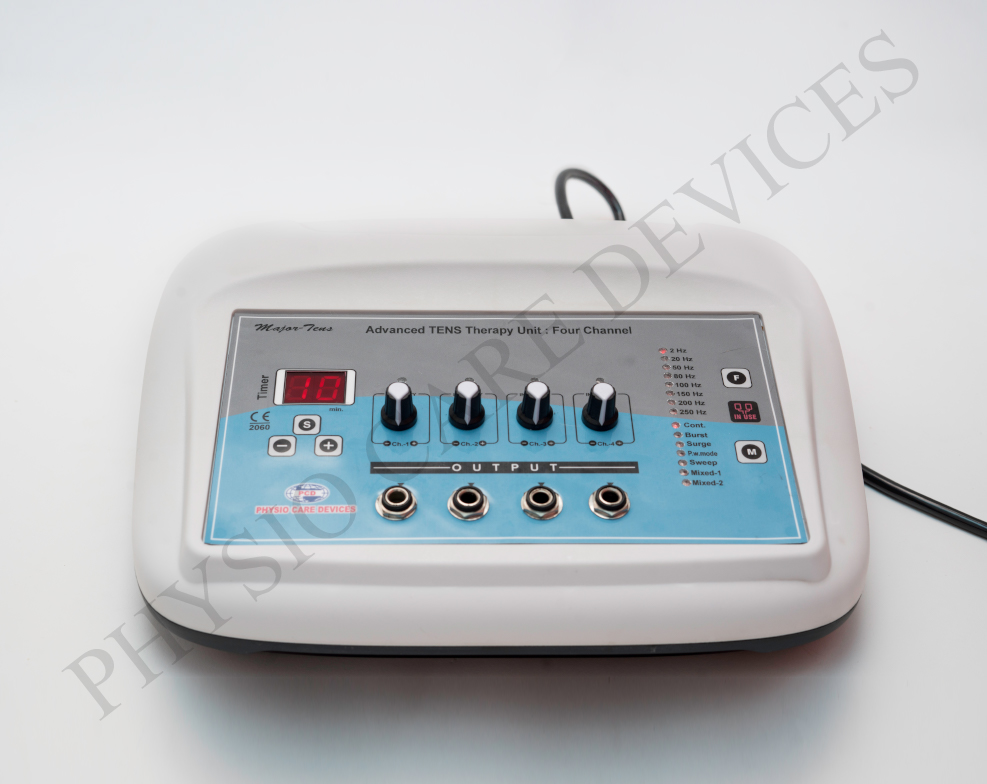 This device utilizes Transcutaneous Electrical Nerve Stimulation (TENS) to deliver low-frequency electrical impulses through the skin, targeting nerves to alleviate pain. The four-channel design allows simultaneous treatment of multiple areas, enhancing therapy efficiency.